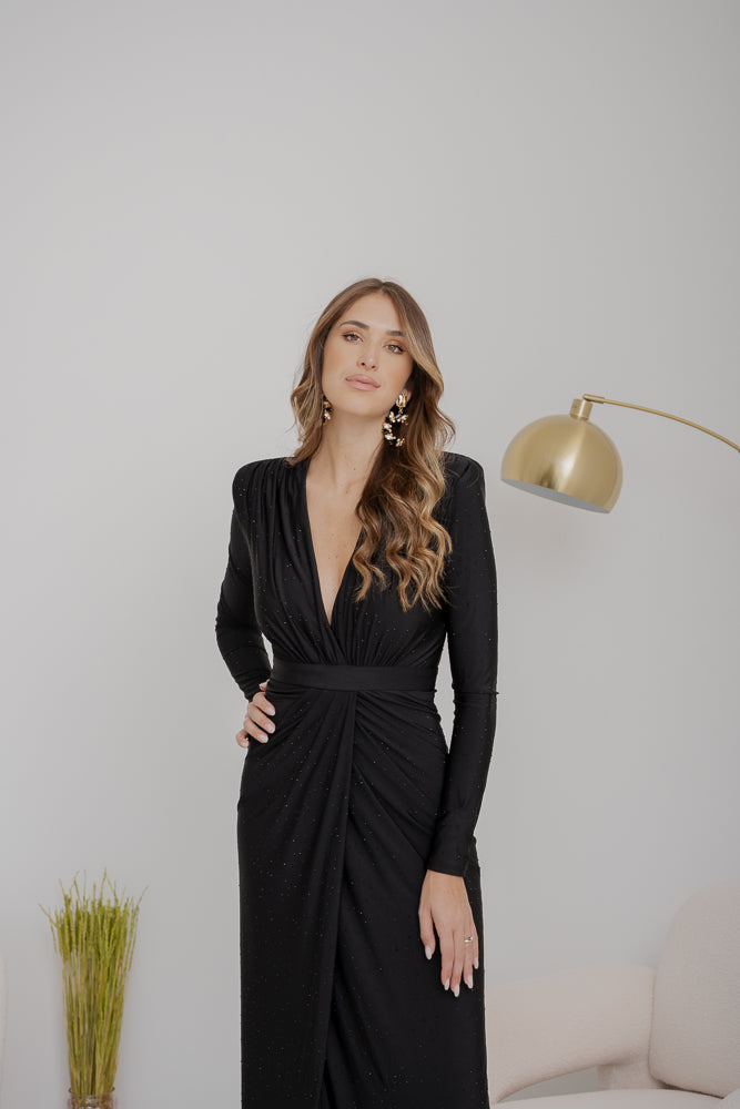 Abito lungo Acacio, con luminosi micro strass;