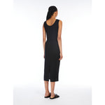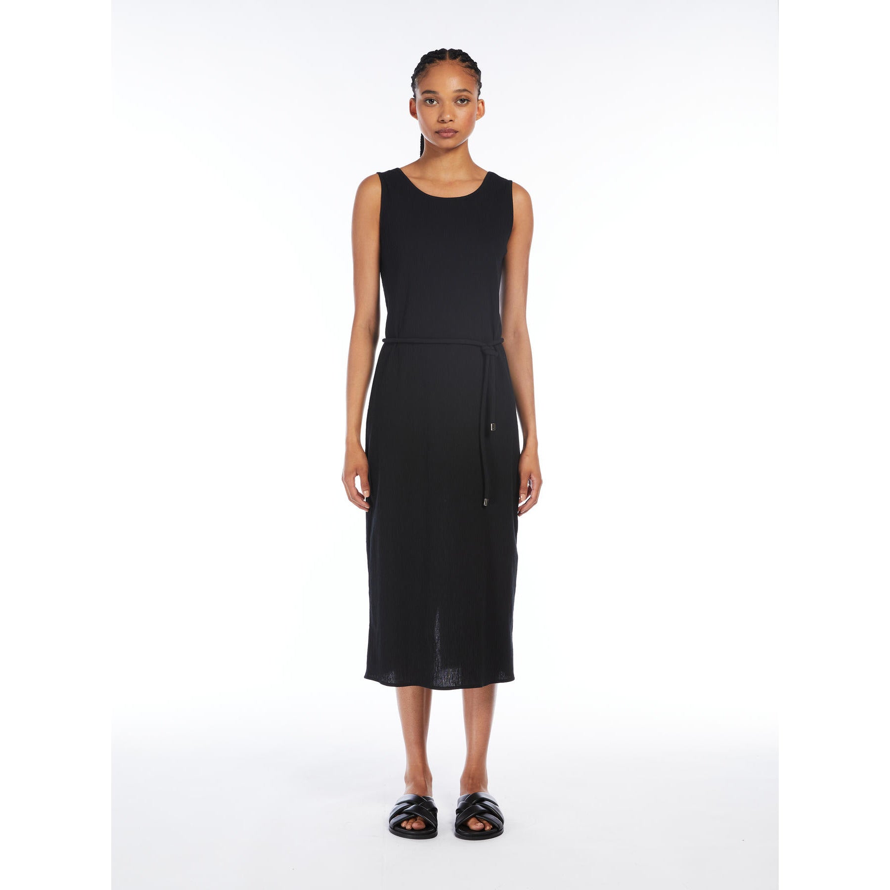 Abito longuette smanicato in maglia jersey, caratterizzato da una lavorazione a pieghe plissè effetto corteccia, che evidenzia la silhouette. Modello dalla linea aderente con scollo a giro, leggermente più ampio sul retro, e cintura tubolare abbinato che evidenzia il punto vita. - Max Mara Leisure;