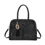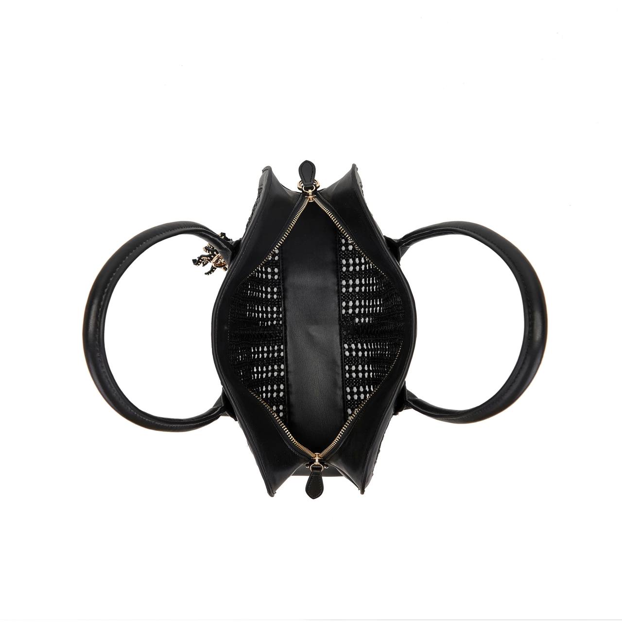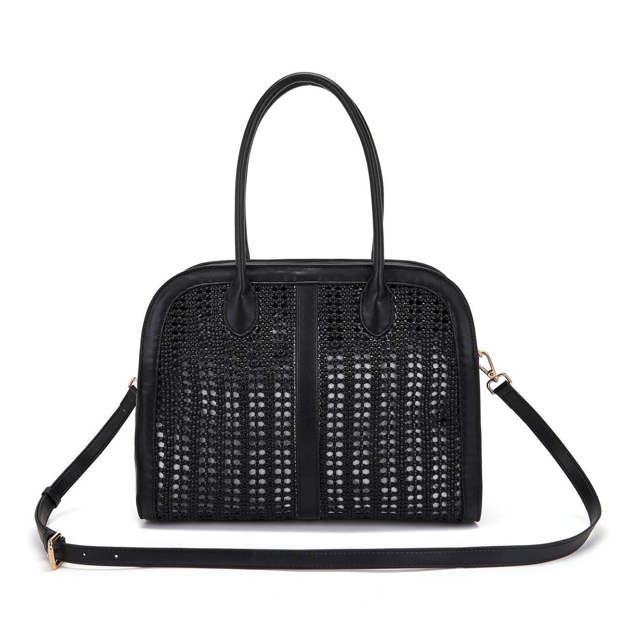 Borsa shopping in Pu intrecciata, doppi manici e tracolla rimovibile.