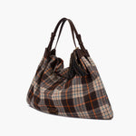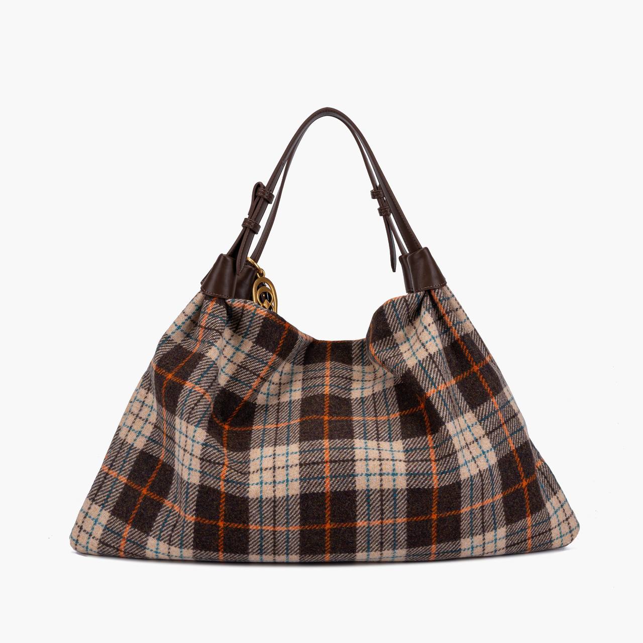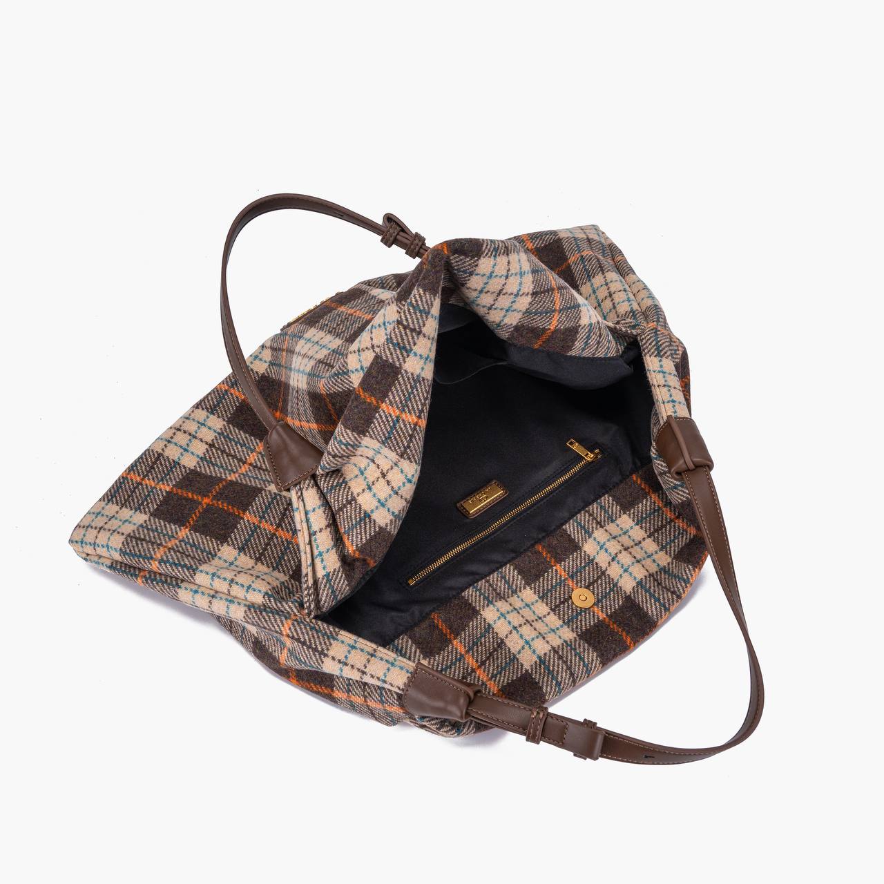 Borsa shopping morbida in tessuto tartan con doppi manici e chiusura a zip.