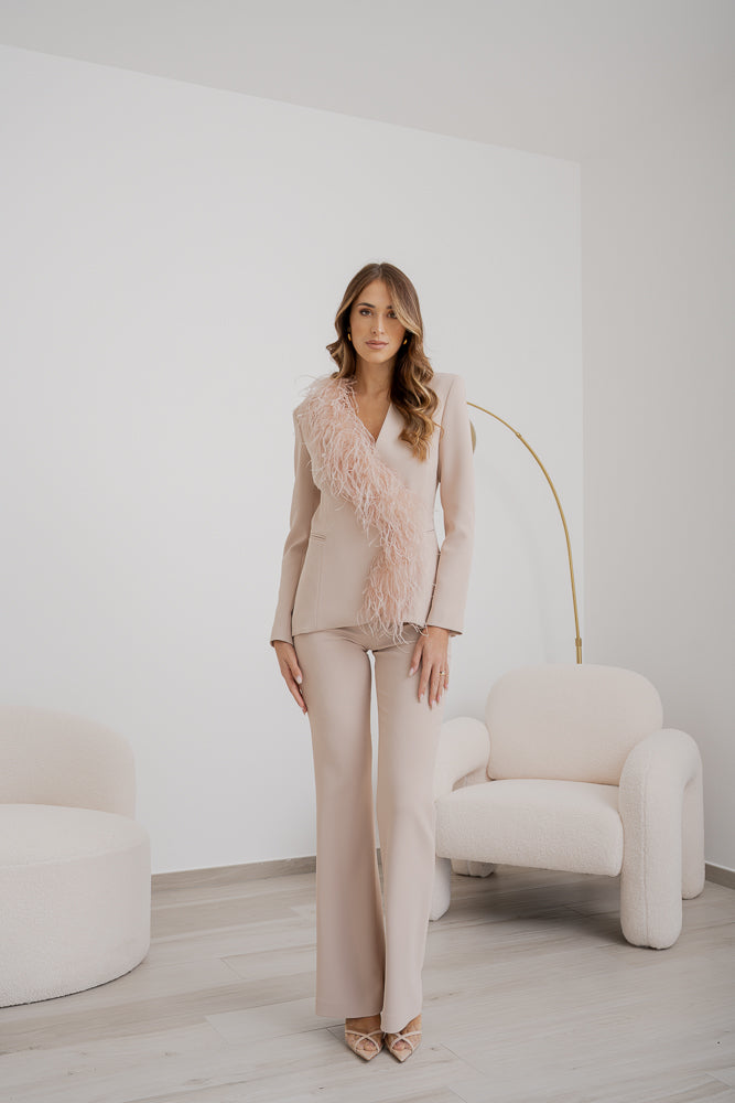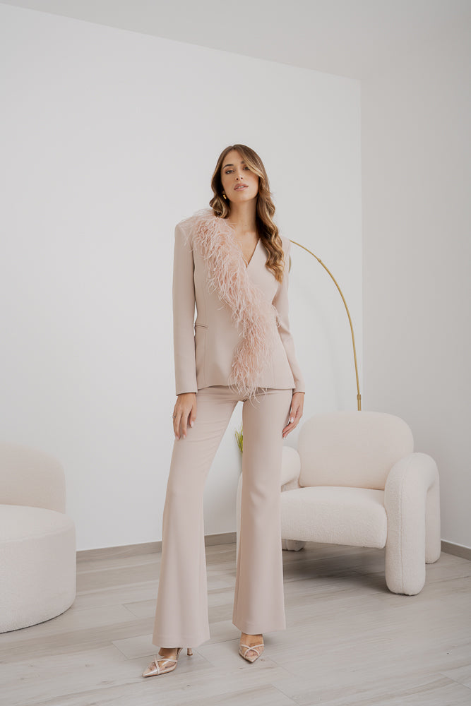 Pantalone Macra, pantalone a zampa vita alta con bustino e zip posteriore a scomparsa.