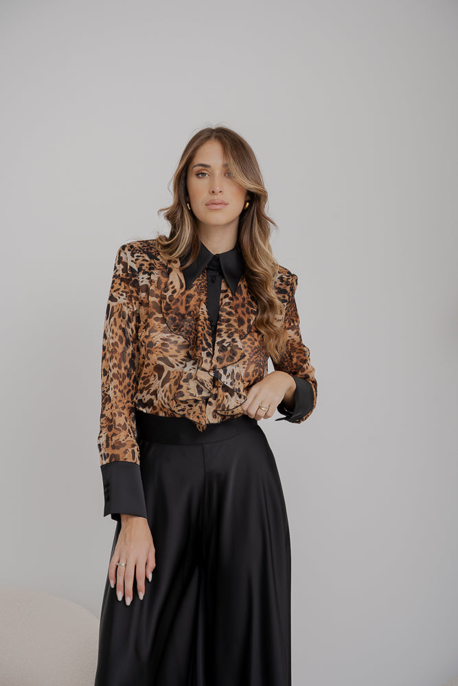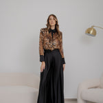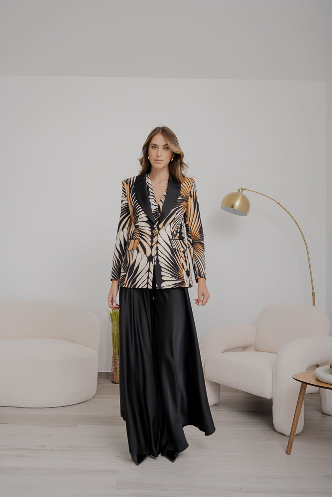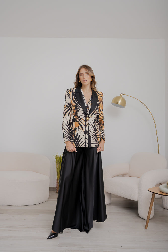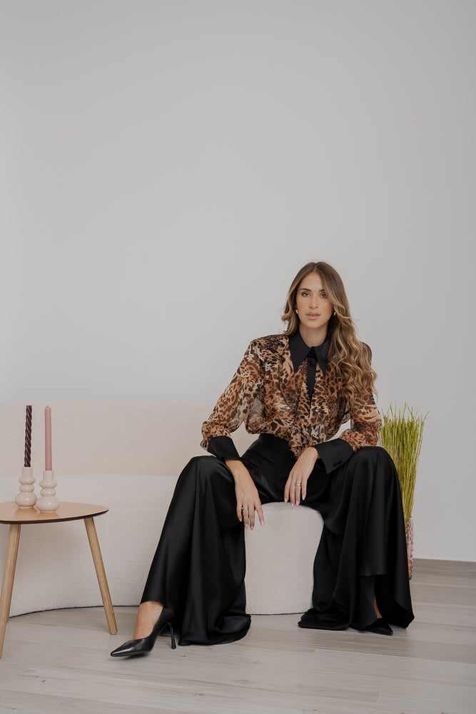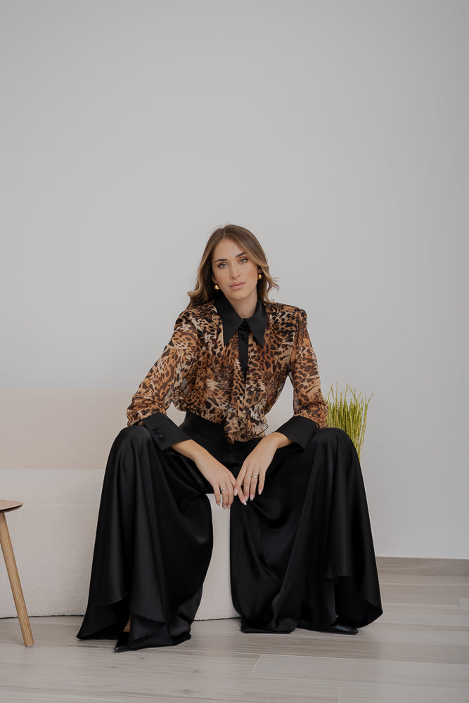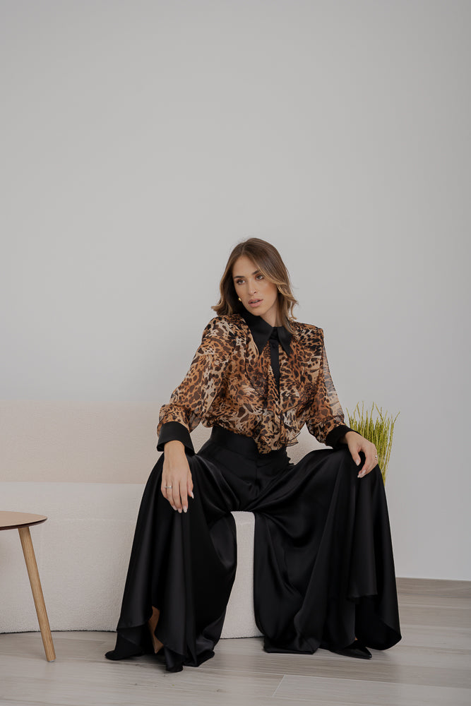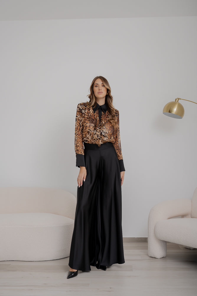 Pantalone ampio, in doppio raso, con gamba ampia.