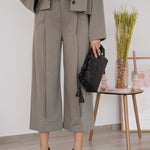 MM MAX MARA Un pantalone di eleganza raffinata firmato MAX MARA MM, realizzato in tessuto maglia jersey gessato nel sofisticato colore verde salvia. L'elastico dietro in vita e le due tasche a filetto garantiscono comfort e praticità, rendendolo perfetto per ogni occasione