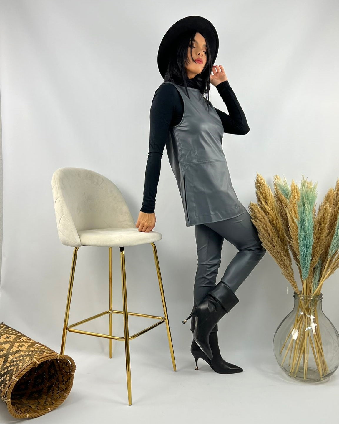 T-shirt a maniche lunghe in jersey di viscosa stretch, caratterizzata da collo alto e vestibilità leggermente aderente.