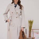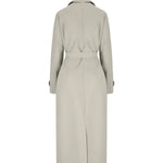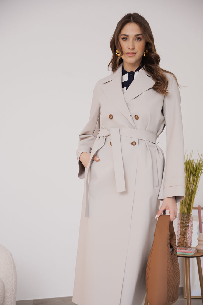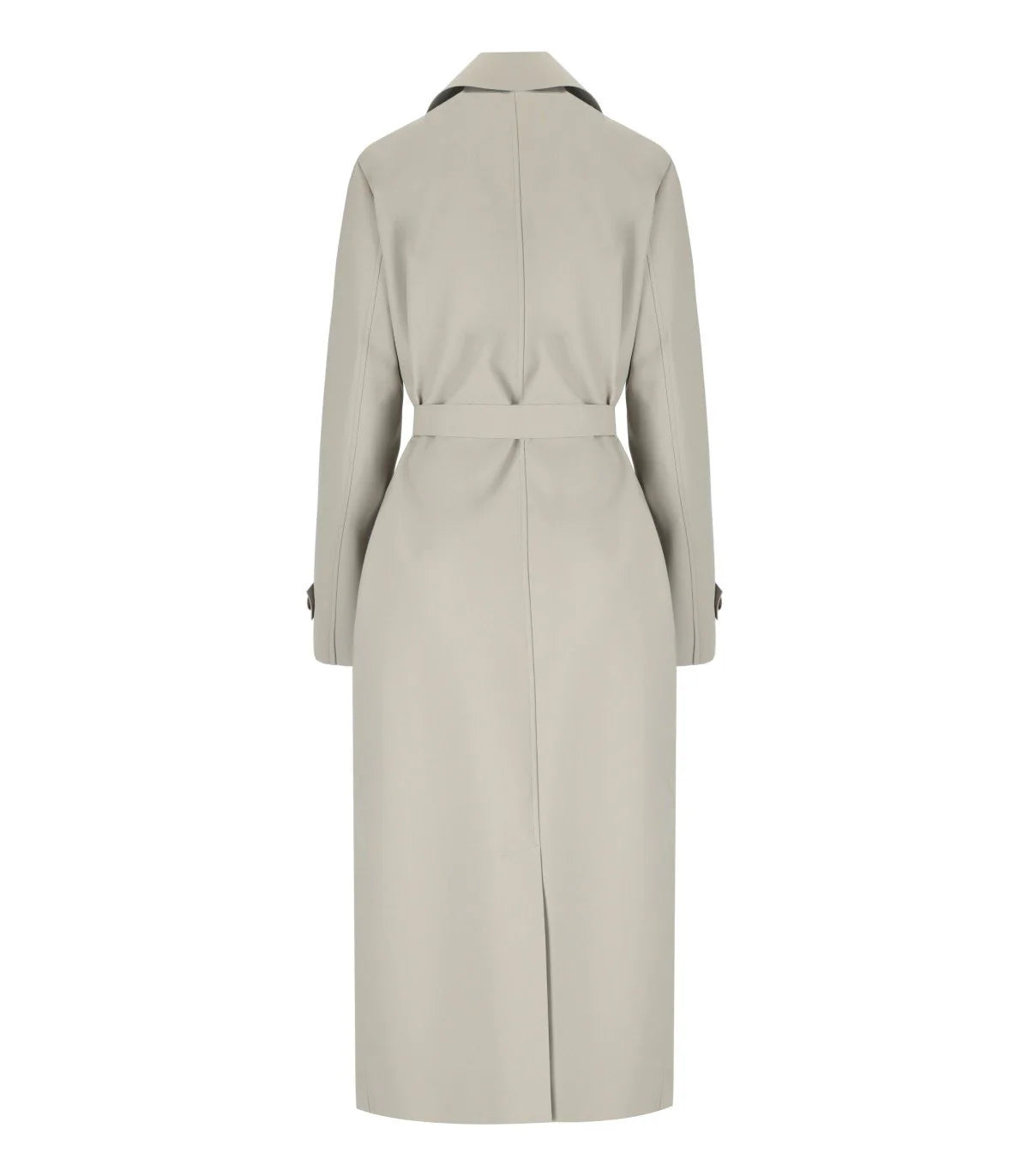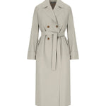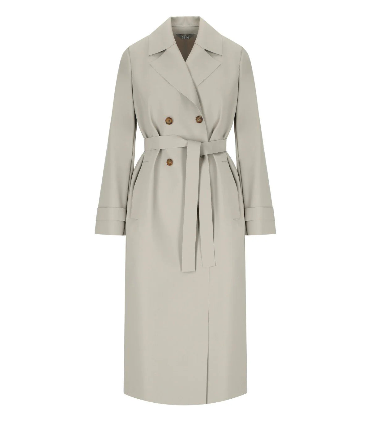MM MAX MARA Trench Cedro realizzato in tessuto tecnico con spalmatura in resina poliuretanica, color mandorla. Sfoderato, è dotato di tasche sul davanti, spacco posteriore e cintura abbinata da annodare in vita. Chiusura doppiopetto.